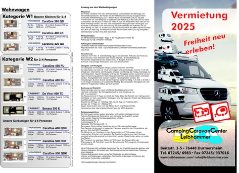 Mit über 20 Jahren Erfahrung bieten wir Ihnen stets Top aktuelle gepflegt Reisemobile und Wohnwagen von Weinsberg und Tabbert in allen Größen und Varianten. Alle unsere Mietfahrzeuge sind neu bzw. in ihrer 2. Mietsaison.